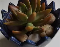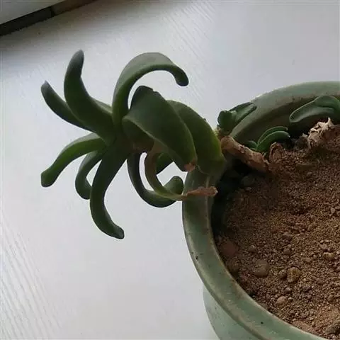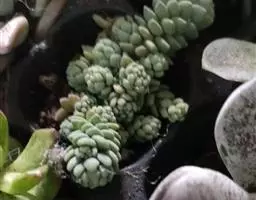 蓝黛莲是一种景天科厚叶草属植物。叶片呈略扁的圆柱形,排列成莲座状;颜色为灰绿色,…