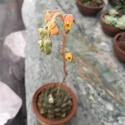 大和锦是景天科拟石莲花属的多肉植物。肉质叶排成紧密的莲座状,广卵形至散三角卵形,背面突起呈龙骨状,…