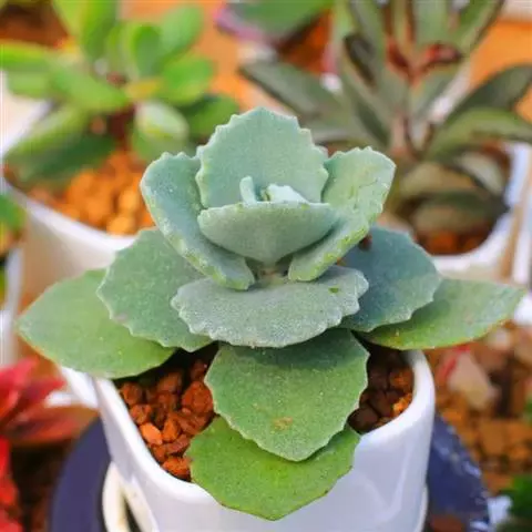 毛叶莲花掌 又名墨染、景天科、莲花掌属;喜温暖干燥和阳光充足环境。不耐寒,耐干旱,但怕高温。毛叶莲…