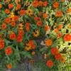 万寿菊是菊科万寿菊属一年生草本植物,别名孔雀菊、缎子花、臭菊花、西番菊、红黄草、小万寿菊、臭芙蓉、孔雀草。万寿菊茎近基部分枝。叶羽状分裂,长5-10厘米,宽4-8厘米,裂片长椭圆形或披针形,具锐齿,上部叶裂片齿端有长细芒,叶缘有少数腺体。头状花序单生,径5-8厘米,花序梗顶端棍棒状。总苞长1.8-2厘米,径1-1.5厘米,杯状,顶端具尖齿。舌状花黄或暗橙黄色,长2.9厘米,舌片倒卵形,长1.4厘米,基部成长爪,先端微弯缺。管状花花冠黄色,长约9毫米,冠檐5齿裂。瘦果线形,被微毛;冠毛有1-2长芒和2-3短而钝鳞片。花期7-9月。万寿菊中国各地均有栽培,在广东和云南南部、东南部已归化,国外原产墨西哥。万寿菊对土壤要求不严,但以肥沃疏松排水良好的土壤为好。耐移栽,种子发芽适温21-24℃,植株生长适合温度为20-29℃。喜温暖和阳光充足的环境,不