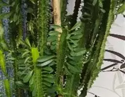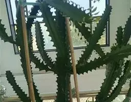 霸王鞭,是大戟科大戟属的多年生肉质灌木,全株含白色乳汁;茎直立,茎基部圆柱形,上部4~5纵棱,…