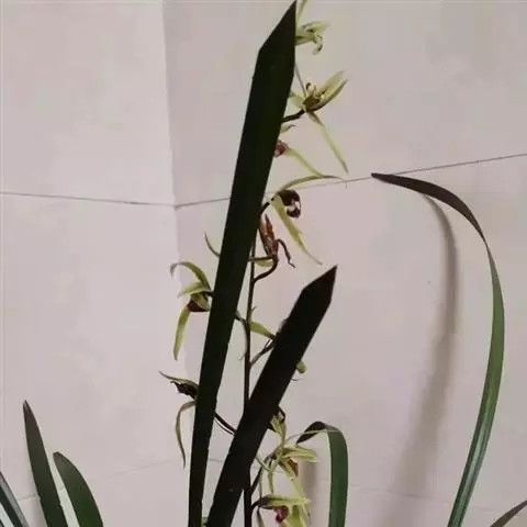 寒兰是兰科兰属的地生草本植物。茎为椭圆形;叶呈带状,尾部修长渐尖,叶脉较明显;每秆花枝开5-12朵,…