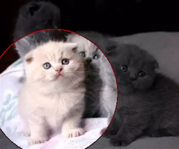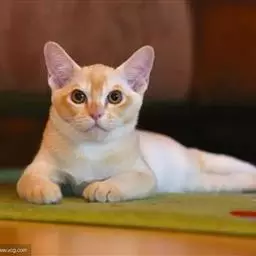 耳朵小,耳尖圆,方向朝前,耳朵根部宽度适当。两耳距离很宽,位置较低,整个圆形的头部融成(而不是改变头部圆形的轮廓)一个完美的整体 。