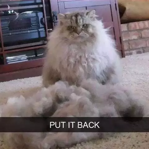 被毛长而厚,像炸开一样直立于身体。质地良好,充满活力而有光泽。长并盖过身体,包括双肩。脖环非常大,厚,非常漂亮的盖在两只前腿之间。耳朵和趾部的毛很长,尾巴非常粗 。