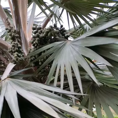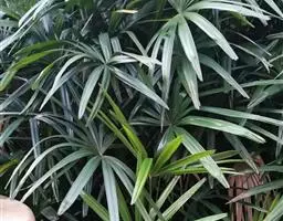 细叶棕竹,灌木,茎细如竹,多数聚生,有网状叶鞘。叶半圆形,掌状深裂,裂片狭长,阔线形,软垂,裂片7…