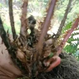 1米高的树,要挖60厘米的树盘,把树盘外的根全部断开,深度视根系情况而定。因桫椤无主根,深度不必过深,在须根不多时,一般在30-50厘米之间可以了。挖起后将10厘米以上的羽状主叶全部剪掉,10厘米以下的2-3个主嫩叶留下。用鲜苔藓泡水后挤去70%左右的水,将桫椤根部和茎部包好后扎上绳子装入木箱,箱内的空间再用鲜苔藓填满就可长途运输。