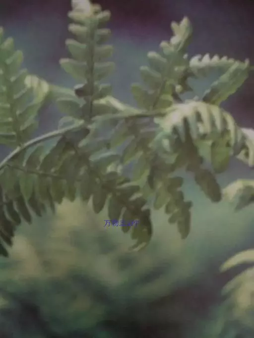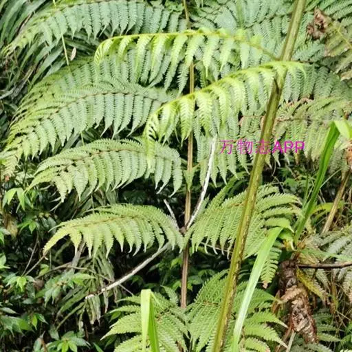 叶片大,长矩圆形,长1-2米,宽0.4-1.5米,三回羽状深裂;羽片17-20对,互生,基部一对缩短,长约30厘米,中部羽片长40-50厘米,宽14-18厘米,长矩圆形,二回羽状深裂;小羽片18-20对,基部小羽片稍缩短,中部的长9-12厘米,宽1.2-1.6厘米,披针形,先端渐尖而有长尾,基部宽楔形,无柄或有短柄,羽状深裂;裂片18-20对,斜展,基部裂片稍缩短,中部的长约7毫米,宽约4毫米,镰状披针形,短尖头,边缘有锯齿;叶脉在裂片上羽状分裂,基部下侧小脉出自中脉的基部;叶纸质,干后绿色;羽轴、小羽轴和中脉上面被糙硬毛,下面被灰白色小鳞片。