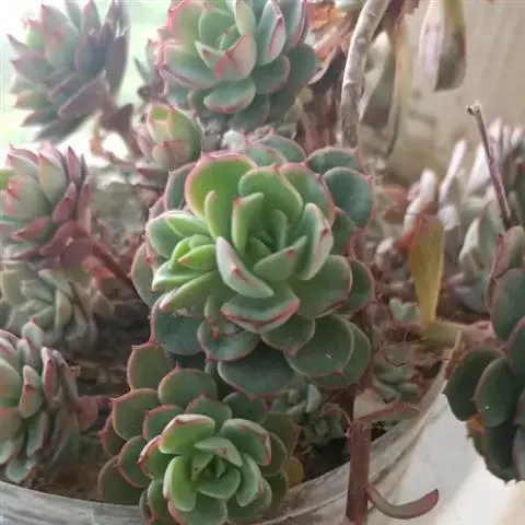 女雏是景天科石莲花属的多肉植物。特征是小巧的株形和橙粉色叶缘。极易生侧芽,…