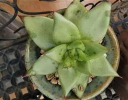 蓝石莲是景天科、拟石莲花属的多肉植物。茎部粗壮,成熟植株茎部木质化。叶片莲座型密集排列,株径不会很大,…