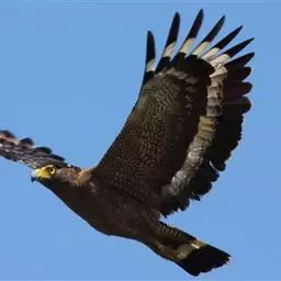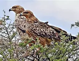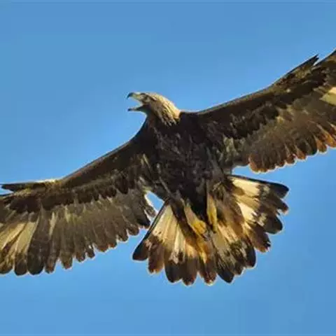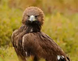 白肩雕:又名御雕,是大型猛禽。体长73-84厘米。体羽黑褐色,头和颈较淡,肩部有明显的白斑,在黑褐…