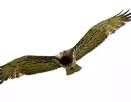 靴隼雕:是鸟纲、鹰科的中型鹰类。全长约40-53厘米,头、颈白色沾棕,纵贯以暗褐色轴纹,眉纹黑色。…