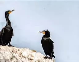 双冠鸬鹚是鹈形目鸬鹚科的鸟类,鸟嘴强而长,上嘴两侧有沟,嘴端有钩,适于啄鱼;下嘴基部有喉囊;鼻孔小,…