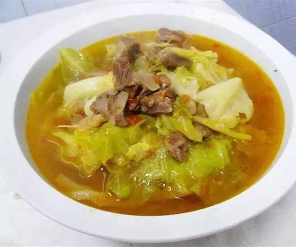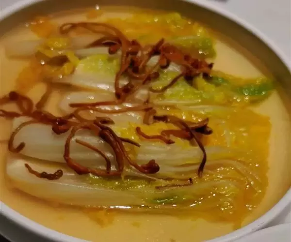 主料:娃娃菜、火腿、辣椒、皮蛋、猪骨汤