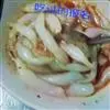 6、将火腿肠、尖椒票、皮蛋丁继续煮开。