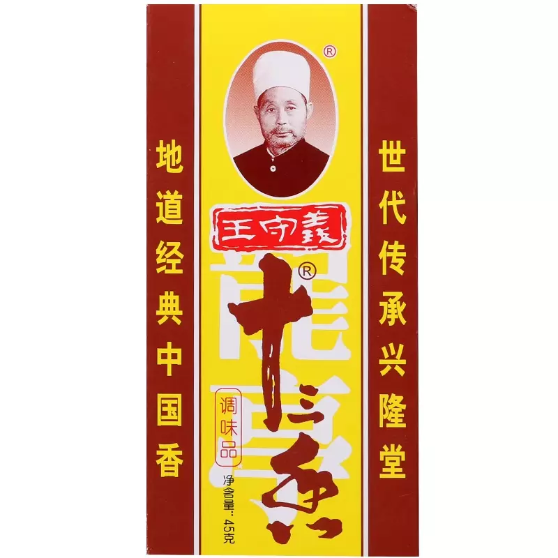 配方5:桂皮45,花椒18,小茴10,八角15,香叶3,干姜5,砂仁3,肉蔻1。