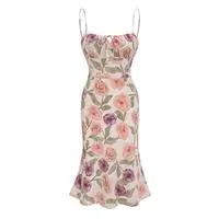 印花吊带裙