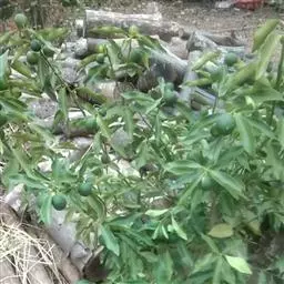 香橼为小乔木或灌木状;株高达5米;幼枝、芽及花蕾均暗紫红色;茎枝多刺,长达4厘米;单叶,…
