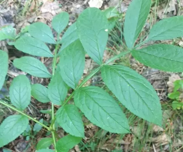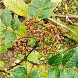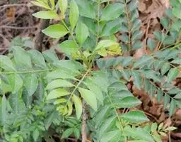 叶有小叶9-13片,小叶对生,无柄,位于顶端的一片则具长柄,椭圆至长圆形,长3-12厘米,宽1-5厘米,生于叶轴上部的较大,叶缘有细锯齿,叶脉不甚明显,中脉被毛,成长叶的毛逐渐脱落;叶轴有甚狭窄的冀叶。