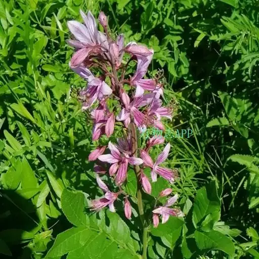 白鲜(学名:Dictamnus dasycarpus Turcz.)是芸香科、白鲜属茎基部木质化的多年生宿根草本植物,高可达100厘米。根斜生,淡黄白色。茎直立,叶片对生,无柄,椭圆至长圆形,叶缘有细锯齿,叶脉不甚明显,总状花序;苞片狭披针形;花瓣白带淡紫红色或粉红带深紫红色脉纹,倒披针形,萼片及花瓣均密生透明油点。种子阔卵形或近圆球形,光滑。5月开花,8-9月结果。
