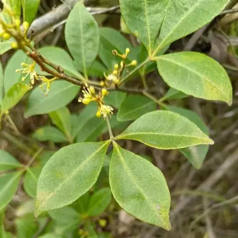 青花椒属灌木;枝灰褐色,有短小皮刺。小叶椭圆形或椭圆状披针形,边缘有细锯齿,齿缝间有腺点,表面绿色…