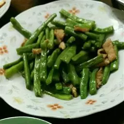 2.锅里放油,姜,大料,肉,放里面炒,变色放酱油料酒,然后吧豆角放里面炒,放盐,然后放水,水不要莫过豆角,放鸡精,盖盖子。