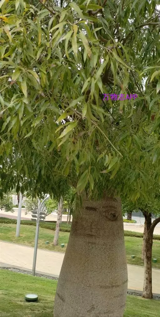 瓶树,原产南美,别名也叫纺锤树Cavanillesia-arborela,属,外形与本植物相似,是不同植物在类似生态环境上相同适应造成的。纺锤树生长在南美洲的巴西高原上,远远望去很像一个个巨型的纺锤插在地里。纺锤树有30米高,两头尖细,中间膨大,最粗的地方直径可达5米,里面贮水约有2吨。雨季时,它吸收大量水分,贮存起来,到干季时来供应自己的消耗。