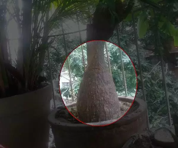 瓶树的叶型由披针形至掌状,有极大的变异,苗木时为深裂的掌状叶,成株逐渐转变以披针形的叶为主,花似风铃,成熟的蓇葖果开裂为船型,花果隐蔽在枝叶中,并不明显。树干上半部的树皮仍保持绿色,具有行光合作用的功能,下半部的树皮龟裂,触感相当坚硬。 肉质灌木,茎干矮肥,肉质,基部膨大。叶掌状盾形,3裂至5裂,叶痕大。花聚生于枝顶,橙红色,五瓣,花梗分枝似珊瑚。株高40 - 50厘米,茎干基部膨大呈卵圆状棒形,上部二歧分枝,叶6-8片簇生于枝顶,盾形,3浅裂,光滑,稍具蜡质白粉。花序重复二歧分枝,长约15厘米,花鲜红色。 叶子碧绿碧绿的,造型独特,每片叶子都分出五个叶面,四个叶面两两相对,还有一个独立在他们的上面,远远看去就好像小巧玲珑的扇子。每到四月,它就会开花。火红火红的小小的花瓣从茂盛的枝叶间探出头来张望这美丽的世界,它好象在说:“时间多美丽呀!” 瓶树最有趣的是它的枝干。圆鼓鼓的,好似弥勒佛的大肚子一样!它株形奇特,一年四季开花不断,是中国栽培已久的室内盆栽佳品。