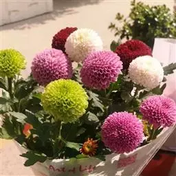 乒乓菊是菊科的一种植物,因为外形像乒乓球而得名,有黄、绿、白、红四种颜色,常作为鲜切花使用,…