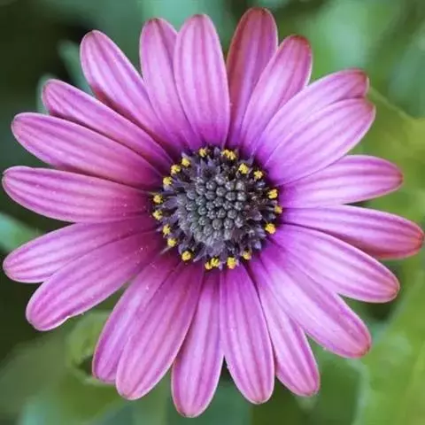 蓝目菊别名非洲雏菊、大花蓝目菊。原产南非,不耐寒.忌炎热,适宜温度18℃~26℃,喜向阳环境。宜排水良好的土壤。菊科菊属多年生草本植物,常作一年生栽培。