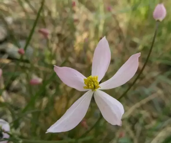 植株全部无毛。茎高11-78厘米,上部分枝或不分枝。基生叶2-6,长5-18厘米,为二至四回三出复叶;叶片长2.5-10厘米;小叶薄革质,钻状狭线形或狭线形,长0.6-3厘米,宽0.5-1.5毫米,顶端尖,边缘常反卷,中脉隆起;叶柄长1.5-9厘米,基部有短鞘。茎生叶2-4,似基生叶,渐变小。聚伞花序伞房状;花梗细,长2-4.5厘米;萼片4,粉红色或白色,椭圆形或狭倒卵形,长6-10毫米,宽3-5毫米;雄蕊长2.8-3毫米,花药长圆形,长约2毫米,有短尖,花丝短,丝形;心皮7-11,无柄,花柱短,腹面生柱头组织。瘦果纺锤形,长3.5-4.5毫米,粗约1.2毫米,有8-10条纵肋。6-7月开花。