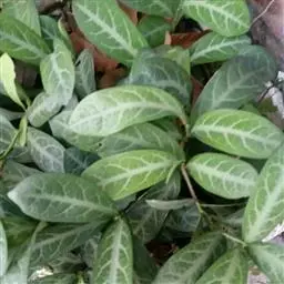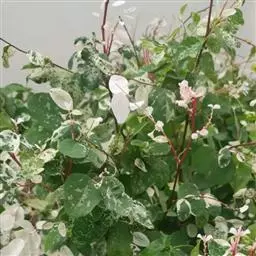常绿小灌木。株高约50~120厘米,枝条暗红色 。叶互生,圆形或阔卵形,全缘。白色或有白色斑纹。嫩…