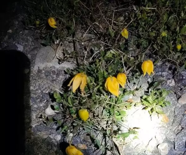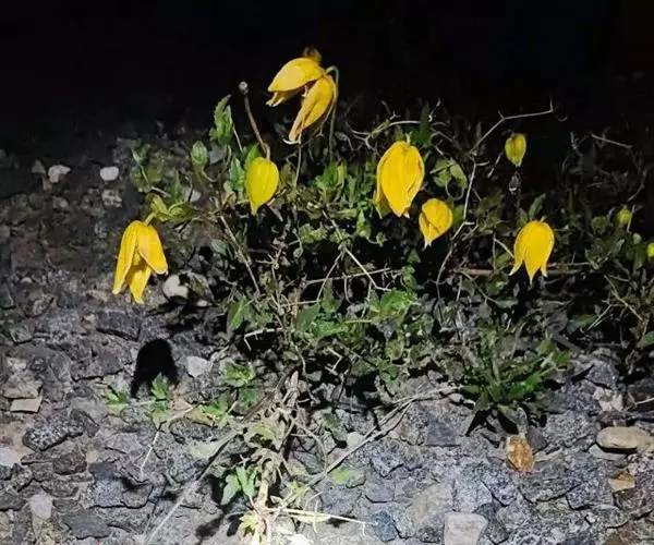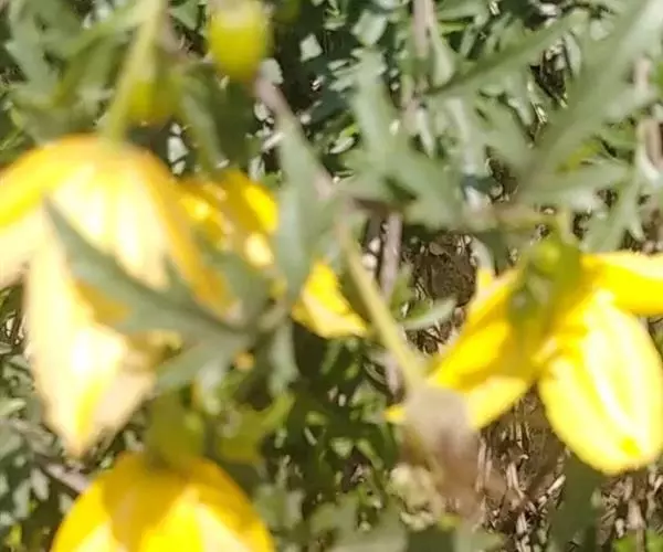 花单生,有时为单聚伞花序,有3花,腋生;花序梗粗壮,长(4.5-)6-15(-20)厘米,有柔毛;萼片4,黄色外面带紫色,斜上展,狭卵形、椭圆状长圆形,长1.5-2.5(-3.5)厘米,顶端渐尖或急尖,外面边缘有短绒毛,中间被柔毛,内面无毛,或近无毛;花丝下面稍扁平,被开展的柔毛,花药无毛; 子房密生柔毛。