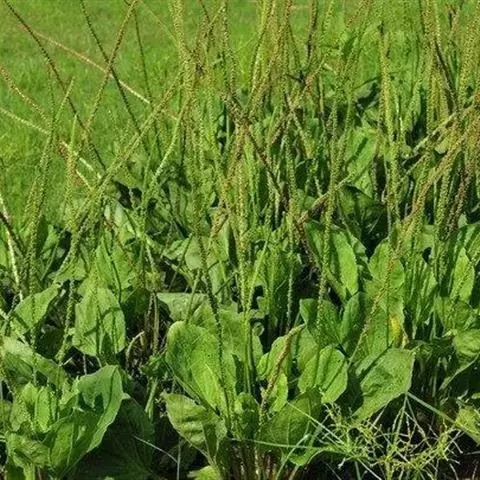 北美车前 车前草果穗下部果实外壳初呈淡褐色、中部果实外壳初呈黄色、上部果实已收花时,即可收获。车前草抽穗期较长,先抽穗的早成熟,所以要分批采收,每隔3-5天割穗1次,半个月内将穗割完。宜在早上或阴天收获,以防裂果落粒。用刀将成熟的果穗剪下,在晒场晒穗裂果、脱果。晒干后搓出种子,簸净杂质。种子晒干后在干燥处贮藏。