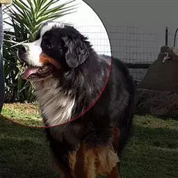 头部:至口吻末端长、结实且深,但不粗糙。前视时如蛋形且丰满,表面没有凹陷或短缺。侧视时,头顶到鼻尖的曲线缓和向下。 头骨:两耳之间的头骨顶部平坦。 鼻子:应为黑色。尖部向下弯曲,鼻孔发育良好。 唇:整洁、紧。 颌/牙齿:下颌深而结实。牙齿健康、整洁、坚固、匀称、排列有序,具有完美、规则而彻底的剪状咬合,即,上齿与下齿紧密交迭,在双颌之间形成方形。