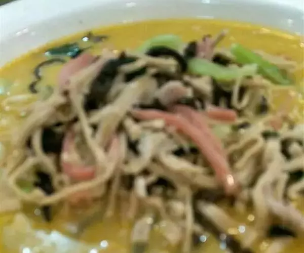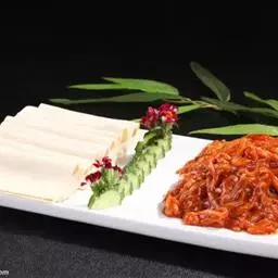 【典故】“扬州好,茶社客堪邀。加料千丝堆细缕,熟铜烟袋卧长苗,烧酒水晶肴。” 上为清代惺庵居士《望江南》词,形象生动地描绘了清代扬州的居民品尝“加料干丝”的情景,颇似一幅生动的风俗画。淮扬菜中豆腐制品花色品种极多,“大煮干丝”又称“鸡汁煮干丝”,风味之美,历来被推为席上美馔。清代乾隆皇帝六下江南,扬州地方官员曾呈上“九丝汤”以“宠媚乾隆”。“九丝汤”系用干丝外加火腿丝、笋丝、银鱼丝、木耳丝、口蘑丝、紫菜丝、蛋皮丝、鸡丝烹调而成,有时还外加海参丝、蛭干丝或燕窝丝。又因豆腐干本身滋味很薄,要想入味,必需借用滋味鲜醇的鸡汁,多种佐料的鲜香味经过烹调,复合到豆腐干丝里,吃起来爽口开胃,异常珍美,令人食之不厌。现今大煮干丝,比之“九丝汤”,已有了很大发展,以干丝、鸡丝为主,干丝洁白,外加鲜虾仁,缀以各种配料,称为什锦干丝,色彩美观,其味更鲜。 “大煮干丝”刀工要求极为精细,“鸾刀应俎,霍霍霏霏”,一块白干,厨师经加工可片成18片,切出的干丝不仅整齐、均匀,而且其粗细不能超过火柴杆。大煮干丝的佐料还要求按季节不同而有变化,春季,旧时用竹蛏入味,以海鲜增味;夏季宜脆,用脆膳丝与干丝同煮,使菜肴干香味爽;秋季用蟹黄,汤汁金黄,鲜味浓重;冬季宜用野蔬,娇嫩翠绿,色彩和谐,增色添香。大煮干丝不仅誉满全国,而且被国外来宾誉之为“东亚名肴”。