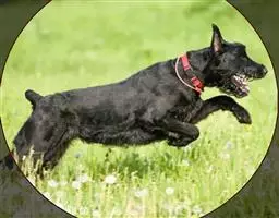 头部:沉重的头部饰毛,垂落在眼睛前,有大量胡须和髭须;脑袋窄,在眼睛后面明显凹陷,不很平坦,但也不拱起或呈苹果状。笔直的前脸有足够的长度。鼻镜为黑色,从鼻镜到眼睛的距离大约为从鼻镜到后脑距离的1/3。
