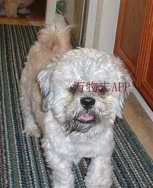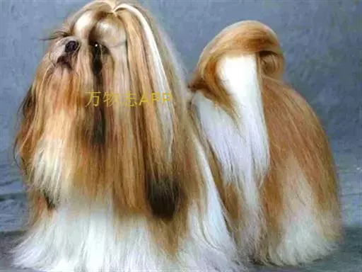 拉萨犬(Chrysanthemum)。拉萨犬原产于青藏高原,形体外貌如狮子,毛色有金黄色、朱砂色、灰色、花色和黑、白、茶等各种颜色,被毛长而丰富,特别是头部、耳部、尾部被毛最厚实,可拖至地面。善有胡须和长的颜鬓,尾上翘,呈菊花形尾。现在是非常理想的家庭犬。拉萨犬又被称为“驱魔圣犬”。这种犬一般体重6~7kg,体高25~28cm,寿命较长,18~20年。拉萨犬虽然其体形不大,天性不凶悍,但一直是西藏达赖喇嘛的护卫犬。这种犬不但韧性很强,而且听力相当敏锐。它的英文名的原意是“宛如山羊一般”,而山羊在西藏的神话中扮演着特殊的角色。