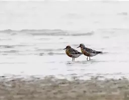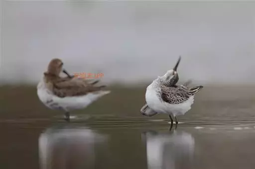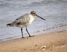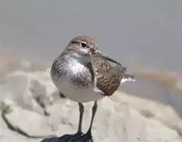 红脚鹬:体长28厘米,上体褐灰,下体白色,胸具褐色纵纹。飞行时腰部白色明显,次级飞羽具明显白色外缘。…