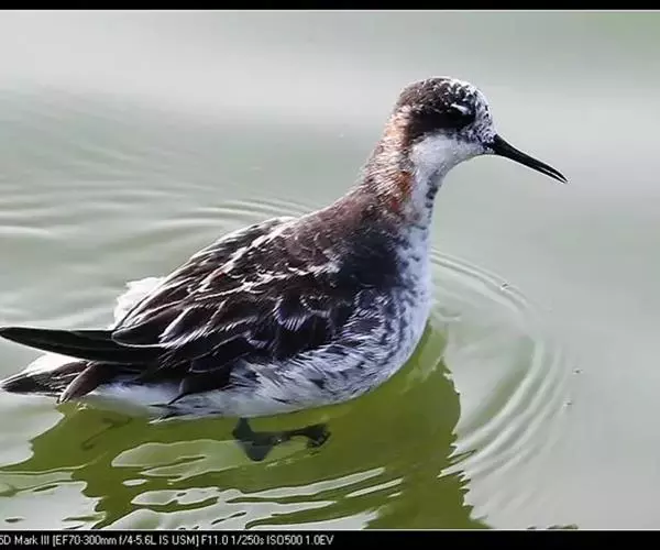 三趾鹬夏羽额基、颏和喉白色,头的余部、颈和上胸深栗红色,具黑褐色纵纹。下胸、腹和翅下覆羽白色。翕、肩和三级飞羽主要为黑色,具棕包和灰色羽缘和白色V形斑及白色尖端。中覆羽和大覆羽灰色,具淡灰色或白色羽缘。小覆羽和初级覆羽黑色。飞羽黑色,其上有宽阔的白色翼带。.内侧初级飞羽外侧具白色羽缘。腰和尾上覆羽两侧白色,中央黑色。中央尾羽黑褐色,两侧淡灰色。