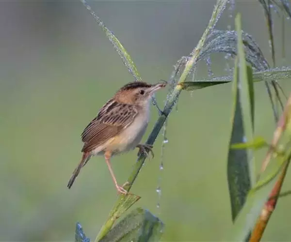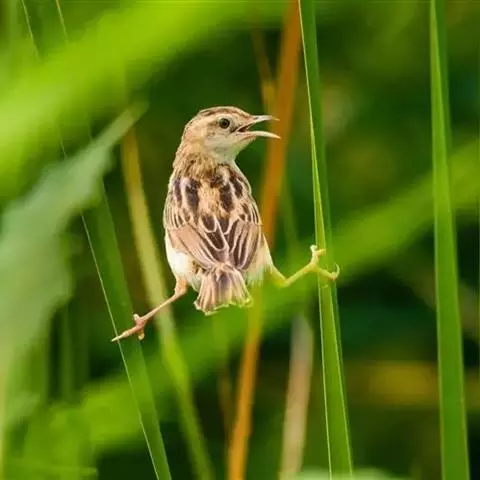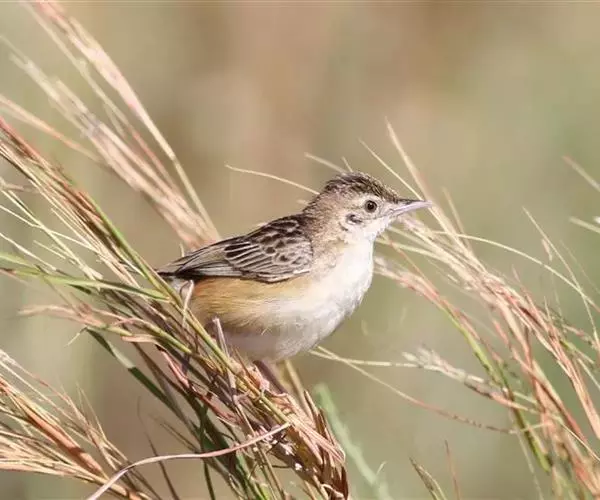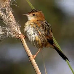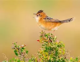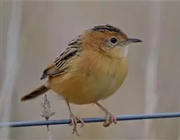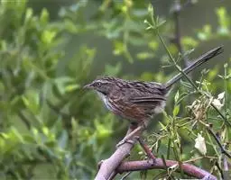 金头扇尾莺体小而具褐色纵纹的莺。嘴细长,略向下弯;翼短,体型娇小,尾长。下体皮黄,喉近白,尾深褐,…