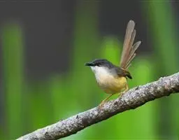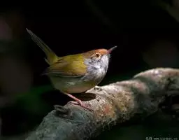 黑喉缝叶莺:体长11.5厘米,是一种小型的顶冠棕色、腹部白色的莺。尾甚长而常上翘,臀黄色,…