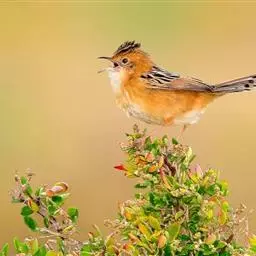 棕扇尾莺是扇尾莺科扇尾莺属的小型鸟类,体长9~11厘米。上体栗棕色具粗著的黑褐色羽干纹和棕白色眉纹,…