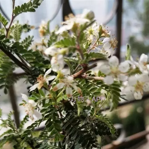 落叶或半常绿灌木,高1-3m。小枝细弱微弯,红褐色或紫褐色,幼时密被灰白色柔毛,后渐脱落,多年生枝黑褐色。奇数羽状复叶,互生,具小叶片7-15 对,连叶柄长2-4.5cm,幼时被绒毛;托叶披针形,有柔毛,早落;小叶片对生,椭圆形、椭圆状长圆形或倒卵状长圆形,长5-10mm,宽2-4mm, 先端急尖或突尖,基部宽楔形或近圆形,全缘,两面均疏被柔毛,下面较密,小叶柄极短;叶轴上有窄叶翼。花两性;顶生伞房花序,有花3-5朵,直径 2-3cm;总花梗和花梗均密被灰白色柔毛;苞片线状披针形,早落;萼筒钟状;萼片5,与萼筒近等长,外面有柔毛;花瓣5,长圆形,白色;雄蕊20;花柱5,基部被长柔毛,柱头头状。梨果卵形或近球形,直径6-8mm,蓝黑色,萼片宿存反折;小核5,骨质,表面粗糙。花期4-5月,果期7月。