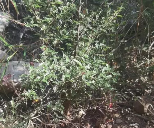 本品复叶有小叶片15-31,多脱落。完整小叶片呈椭圆形、椭圆状长圆形或倒卵状短圆形,长5-10mm,宽2-4mm,全缘,先端急尖或突尖,基部宽楔形或近圆形,两面均被疏柔毛。小叶无柄或近无柄。质脆易碎。
