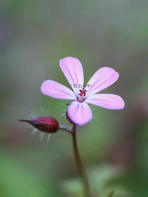 花单生,直径约30毫米,花梗极长;花萼长椭圆状卵形,长12-15毫米,后期微膨大,萼裂片线形,叶状,长20-30毫米;花瓣紫红色,比花萼短,爪狭楔形,白色,无毛,瓣片倒卵形,微凹缺;雄蕊微外露,花丝无毛;花柱外露,被长毛。蒴果卵形,长12-18毫米,微长于宿存萼,裂齿5,外卷;种子呈不规则卵形或圆肾形,长2.5-3毫米,黑色,具棘凸。2n=48。花期6-8月,果期7-9月。