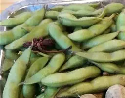 荚果长2-5厘米,宽1-1.3厘米,膨胀,荚厚,种子横径0.5-1厘米。 荚果果壳坚硬,成熟后不开裂,室间无横隔而有缢缩(果腰)。每个荚果有2-6粒种子,以2粒居多,多呈普通型、斧头型、葫芦型或茧形。每荚3粒以上种子的荚果多呈曲棍形或串珠型。百粒重一般50-200克。果壳表面有网络状脉纹。种子三角形、桃形、圆柱形或椭圆形,一般底端钝圆或略平,梢端胚根突出。种皮有白、粉红、红、红褐、紫、红白或紫白相间等不同颜色。子叶占种子总重量的90%以上。胚芽隐藏在两片肥厚的子叶中间,由主芽和两个子叶节侧芽组成。 花果期6-8月。
