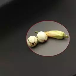 ⑶珍珠豆型。侧枝近主茎,可连续着生若干花序节,仅少数 2次分枝。叶片椭圆形,浅绿色或绿色。植株直立或丛生。果型较小。种子桃形。休眠性弱。