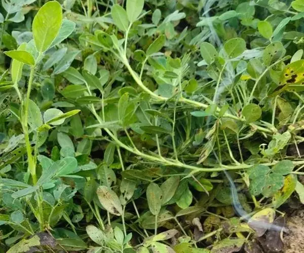⑵龙生型。植株匍匐,交替开花,多毛茸,有花青素,荚果有龙骨(背脊)和勾嘴,曲棍状。果壳网纹深,果针脆弱易断。