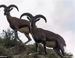 盘羊:雄性肩高可达120厘米,体重可达200千克。雄性的弯角粗大,长达1米以上,向下扭曲呈螺旋状,…