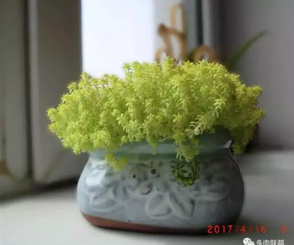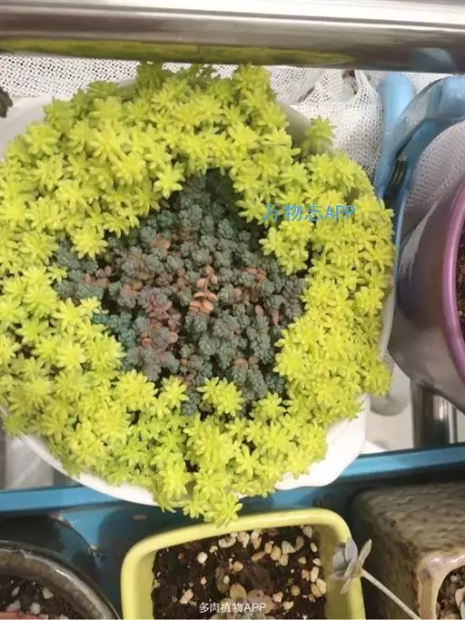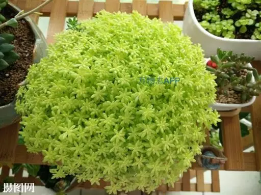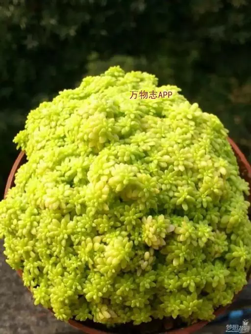 金万年草是景天科景天属植物,光照充足时金黄的颜色非常靓丽是作为花盆边缘的点缀的很好选择。黄金万年草据说原种叶片浓绿色,本种是叶片黄化的园艺品种,所以会出现返祖的现象。